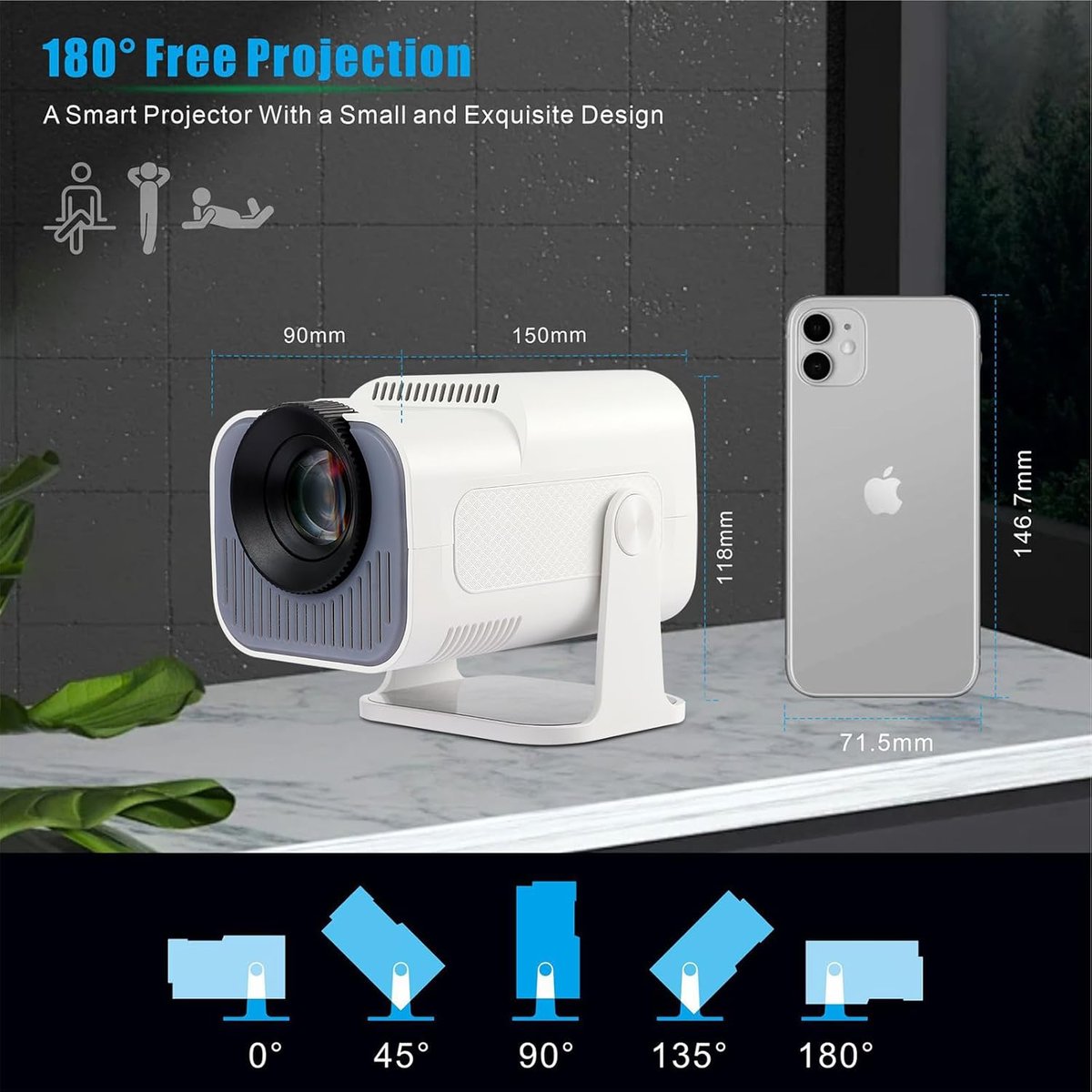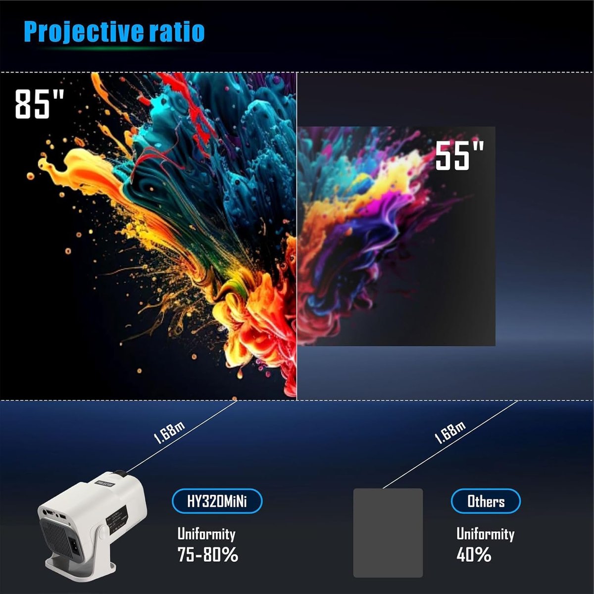 Zamień każde miejsce w kino domowe dzięki HY320 Mini Projektorowi 4K – kompaktowemu, inteligentnemu rzutnikowi z systemem Android 11, który oferuje niesamowitą jakość obrazu, automatyczną korekcję trapezową i łączność bezprzewodową.