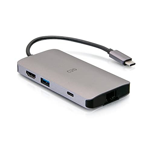 Opis produktu: Mini stacja dokująca C2G 8 w 1 USB-C z zasilaniem HDMI, 2 portami USB-A, Ethernetem, czytnikiem kart SD i USB-C do 100 W - 4K 30 Hz