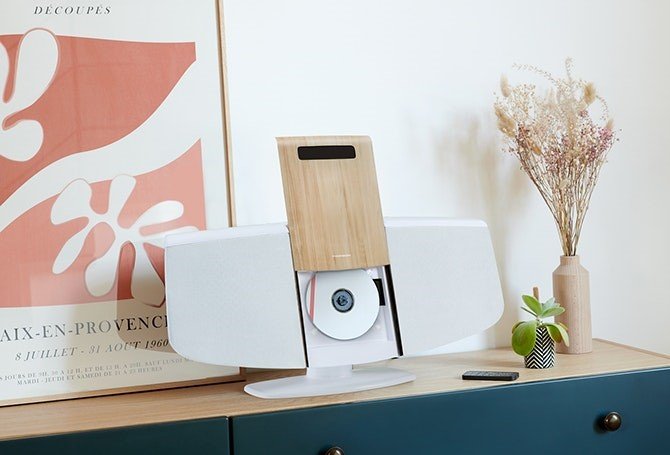 THOMSON MIC401BT umożliwia słuchanie muzyki stereo z płyty CD/MP3, bezprzewodowe przesyłanie strumieniowe przez Bluetooth, na przykład z telefonu komórkowego, słuchanie ulubionego radia FM lub podłączenie innego urządzenia audio do wejścia AUX za pomocą kabla. Mikrosystem można również zamontować na ścianie lub postawić na statywie i wygodnie sterować za pomocą pilota.