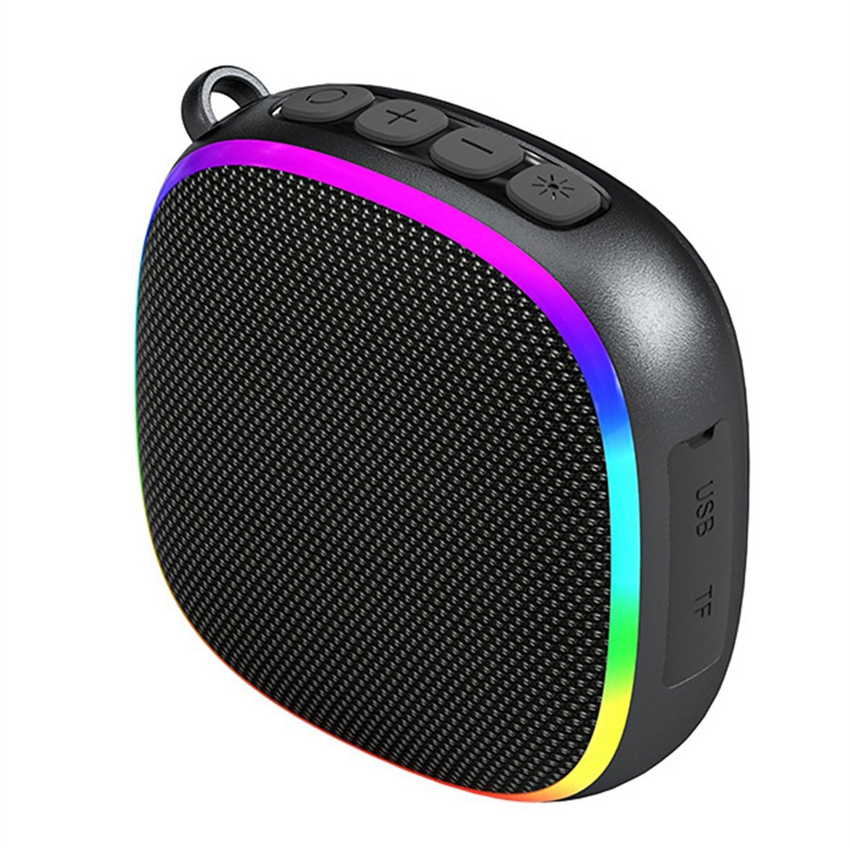 Wejście/wyjście: TF Liczba urządzeń, które można podłączyć jednocześnie: 1 Maksymalny zasięg bezprzewodowy [m]: mniej niż 10 m Tryb dźwięku: tryb dźwięku Hi-Res, tryb standardowy Kategoria: Głośnik Zastosowanie: Kemping Sterowanie: regulacja głośności, odtwarzanie Wersja Bluetooth: 5.3 Moc wejściowa (W): mniej niż 25 W Aktywna redukcja szumów: pasywna z aktywnym subwooferem Sterowanie głosowe: brak Zakres częstotliwości: inne Moc wyjściowa: 5 W Wodoodporność: tak Obsługa aplikacji: nie Obsługa kart pamięci: tak Funkcja odtwarzania: MP3 Wbudowany mikrofon: tak Podział częstotliwości dźwięku: pełna częstotliwość Liczba głośników: 1 Kanał: 2 (2.0) Funkcja: funkcja telefonu, odtwarzanie wideo Bateria: tak Metoda komunikacji: indukcja, Bluetooth Typ głośnika: głośnik zewnętrzny Bateria: 1000 mAh Czas odtwarzania: 4 godziny (50% głośności) Wodoodporność: IPX5 Funkcje produktu: muzyka Bluetooth + połączenia Bluetooth + TF + TWS + światło RGB + przenośna smycz + magnetyczny spód Kolor: czarny Materiał: ABS Zawartość opakowania 1 głośnik Bluetooth 1 x kabel ładujący Tylko powyższa zawartość opakowania, inne produkty Nie są wliczone w cenę. Uwaga: Odbicie światła i różne wyświetlacze mogą powodować, że kolor przedmiotu na zdjęciu będzie się nieznacznie różnić od rzeczywistego. Dopuszczalny błąd pomiaru wynosi +/- 1-3 cm.