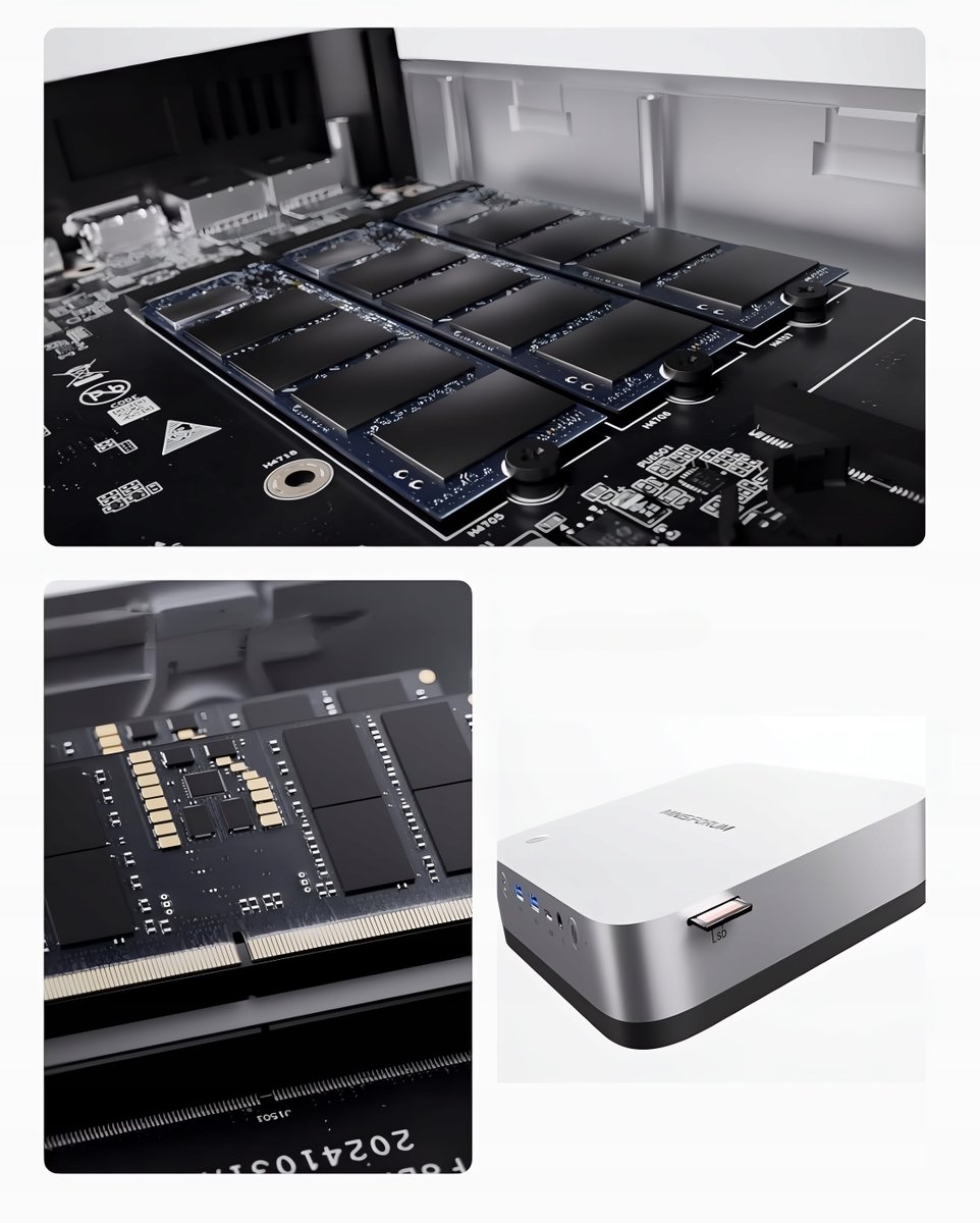 - Szybka łączność i wydajna moc rozszerzenia: wyposażony w dwa interfejsy USB4, może osiągnąć prędkość przesyłania danych do 40 Gb/s i obsługuje połączenie z eGPU przez złącze OCuLink, zapewniając ultrapłynne wrażenia z gry. Obsługuje trzy dyski SSD PCIe 4.0, obsługuje do 7000 MB/s i można go rozszerzyć do 12 TB; jest również wyposażony w do 96 GB DDR5 5600 MHz (do 128 GB), co umożliwia łatwą wielozadaniowość.