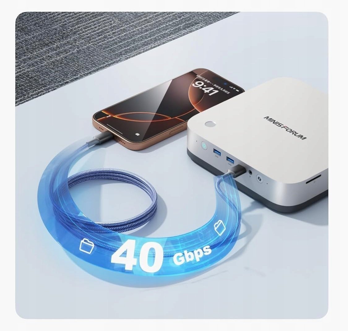 - Interfejs wyjścia graficznego: HDMI 2.1; DP 2.0; USB4 x 2; 8K 60 Hz