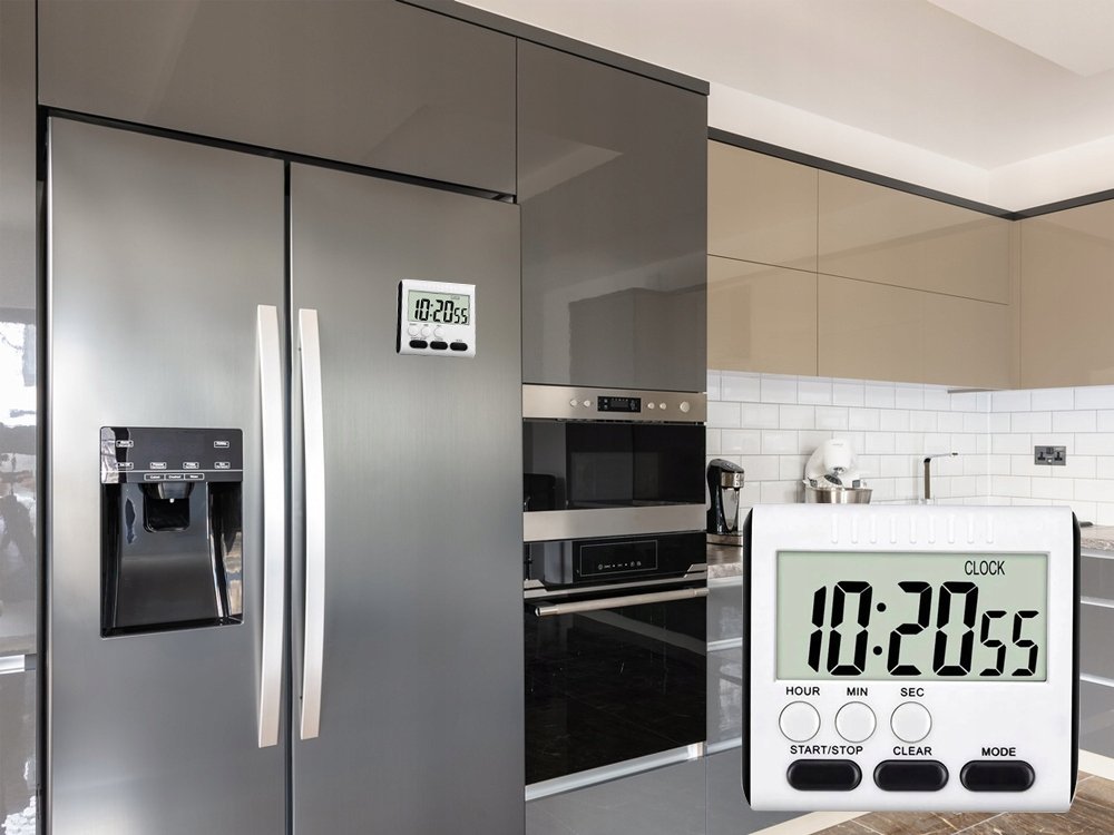 Elektroniczny zegar kuchenny z funkcją timera, idealny do każdej kuchni. Ten kompaktowy i funkcjonalny timer pomoże Ci kontrolować czas podczas gotowania, pieczenia czy innych czynności wymagających precyzyjnego odmierzania czasu.