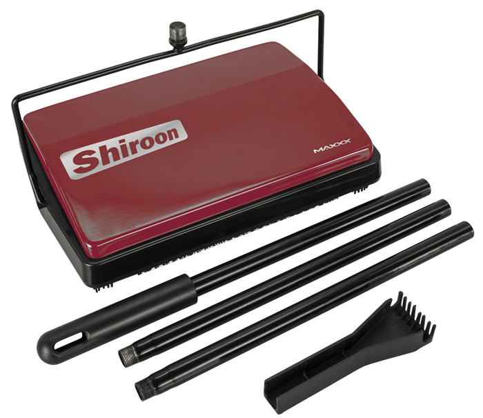 Mechaniczna miotła Shiroon działa dzięki obrotowym szczotkom napędzanym ruchem urządzenia. Wystarczy przesuwać miotłę po powierzchni, a szczotki zbiorą kurz, okruchy i inne zanieczyszczenia.