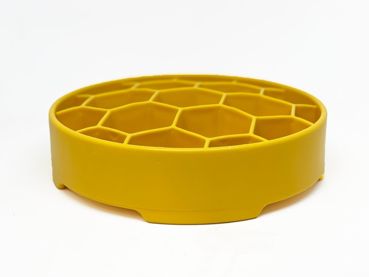 Miska Honeycomb eBowl charakteryzuje się różną wysokością, głębokością i rozmiarem otworów, co pozwala na odwzorowanie bardziej naturalnych warunków jedzenia i wystawia na próbę naturalne instynkty psa. Wolniejsze jedzenie ma następujące zalety: uspokaja i koi Twojego psa, może pomóc zapobiec wzdęciom, poprawić trawienie, poprawić zdrowie jelit, małe posiłki są trwalsze. Ponadto, korzystanie z miski Honeycomb eBowl może pomóc utrzymać psa w rozrywce, zmniejszyć lęk separacyjny, zmniejszyć nudę i niepożądane zachowania związane z nudą..