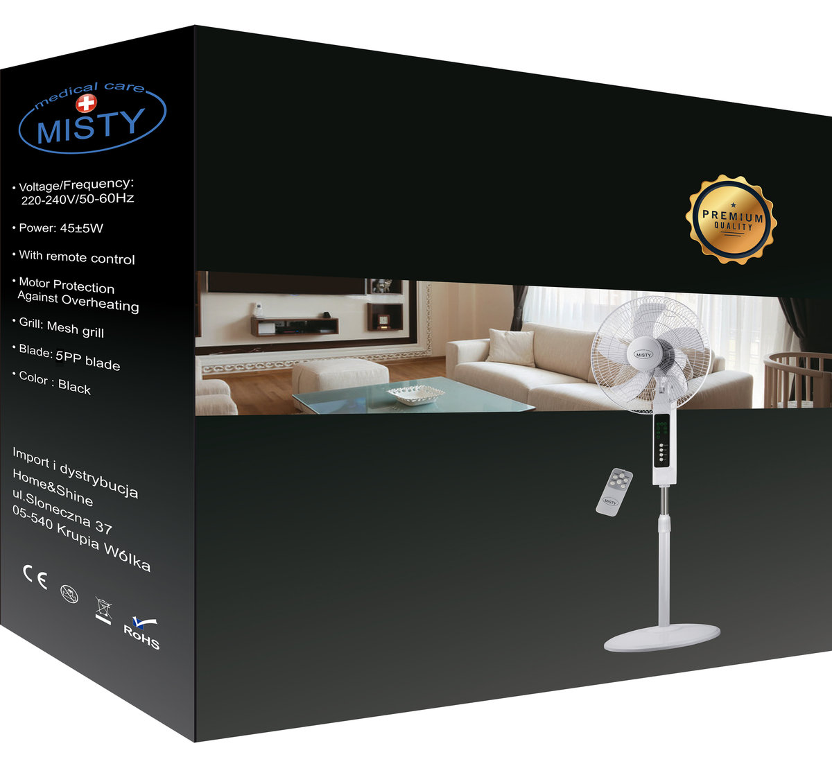 Wentylator wiatrak podłogowy stojący Misty LUX oscylacja automatyczna pilot Załączone wyposażenie pilot