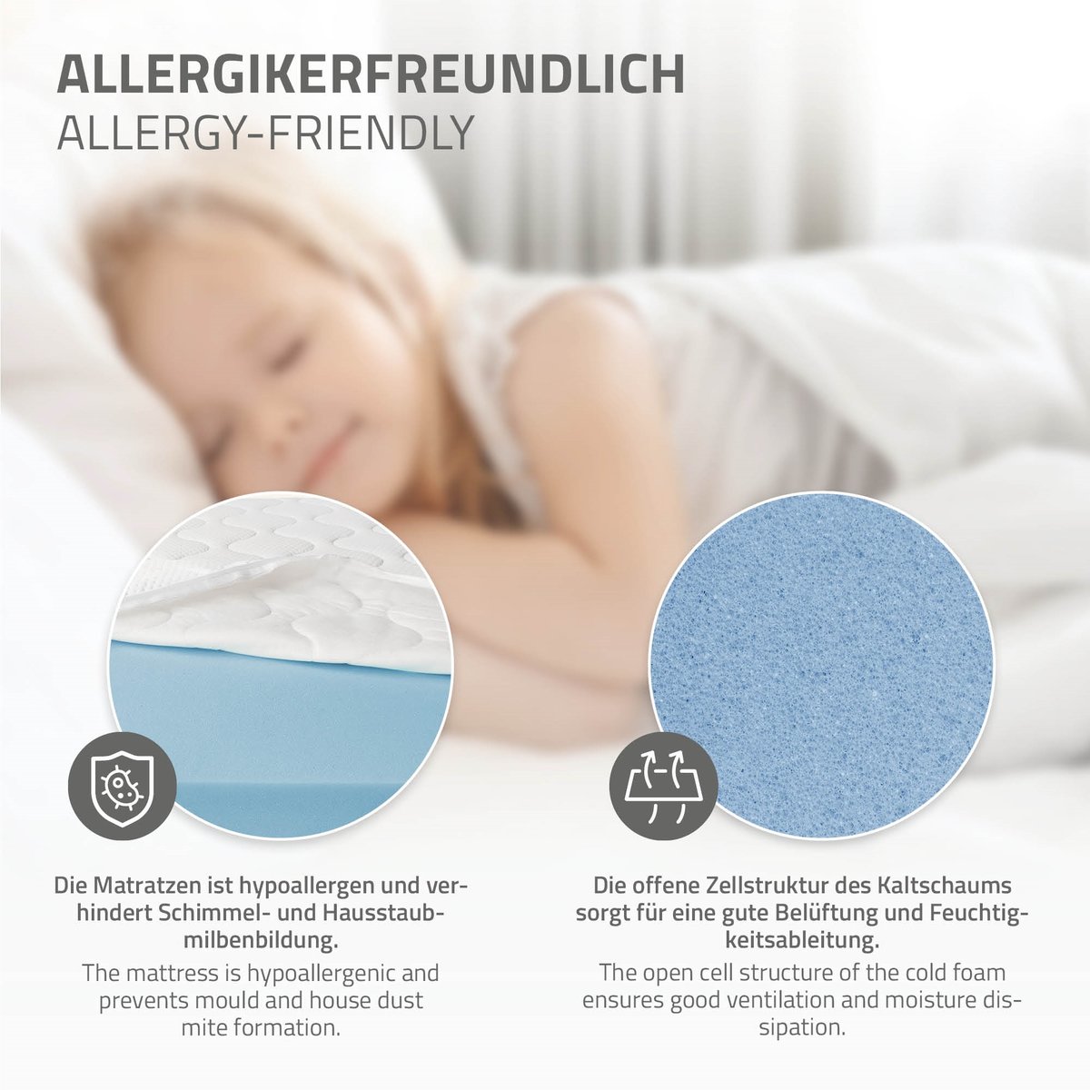 Ten materac z zimnej pianki zapewnia zasłużony, spokojny sen. Materac z zimnej pianki zapewnia zdrowe podparcie dla głowy, szyi, pleców i nóg. Rdzeń materaca jest wykonany z wysokiej jakości, hipoalergicznej zimnej pianki i dlatego jest idealny dla alergików. Jeśli materac ulegnie zabrudzeniu, można po prostu zdjąć pikowany pokrowiec za pomocą zamka błyskawicznego i włożyć go do pralki.
