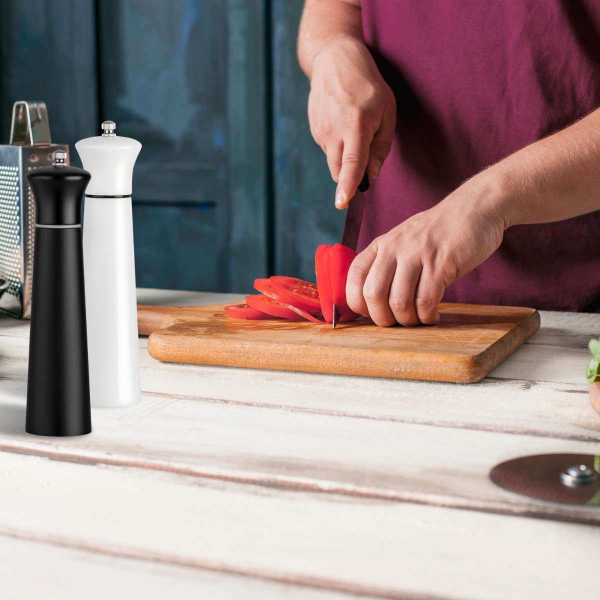 Młynki to prawdziwi mistrzowie stylu! Czarny i biały duet to klasyka, która pasuje wszędzie. Dzięki takim kolorom zawsze będą na topie. Nie tylko ułatwiają życie (sól i pieprz w różnych kolorach!), ale też same w sobie staną się ozdobą Twojego blatu. Prosty, ale efektowny wygląd przyciągnie uwagę każdego.
