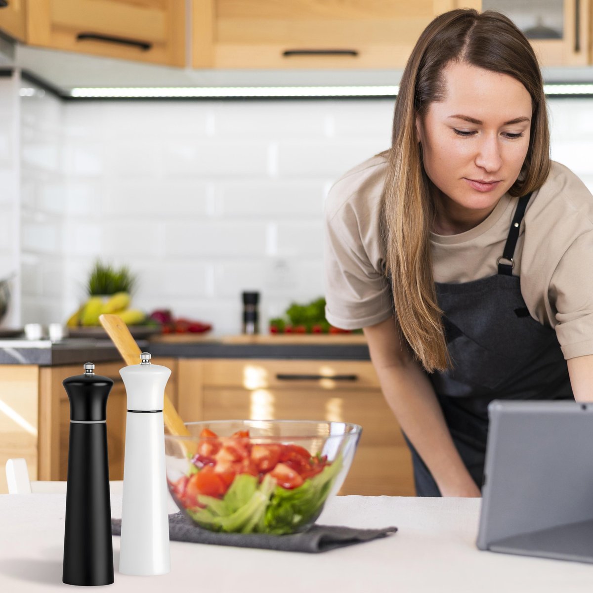Koniec z myleniem przypraw! Czarny i biały młynek to doskonały sposób, by szybko wiedzieć, gdzie jest sól, a gdzie pieprz. Wystarczy rzut oka i już wiesz, co się kryje w środku. To super praktyczne rozwiązanie, które ułatwia gotowanie, a przy tym pozwala uniknąć nieporozumień w kuchni.