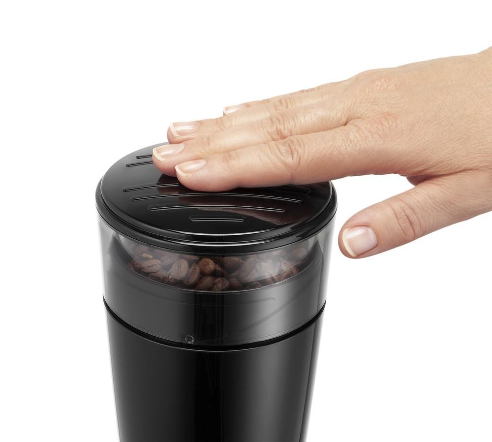 Młynek z szybkoobrotowym ostrzem ze stali nierdzewnej, które mieli kawę na drobny proszek. Doskonały produkt dla początkujących amatorów kawy.