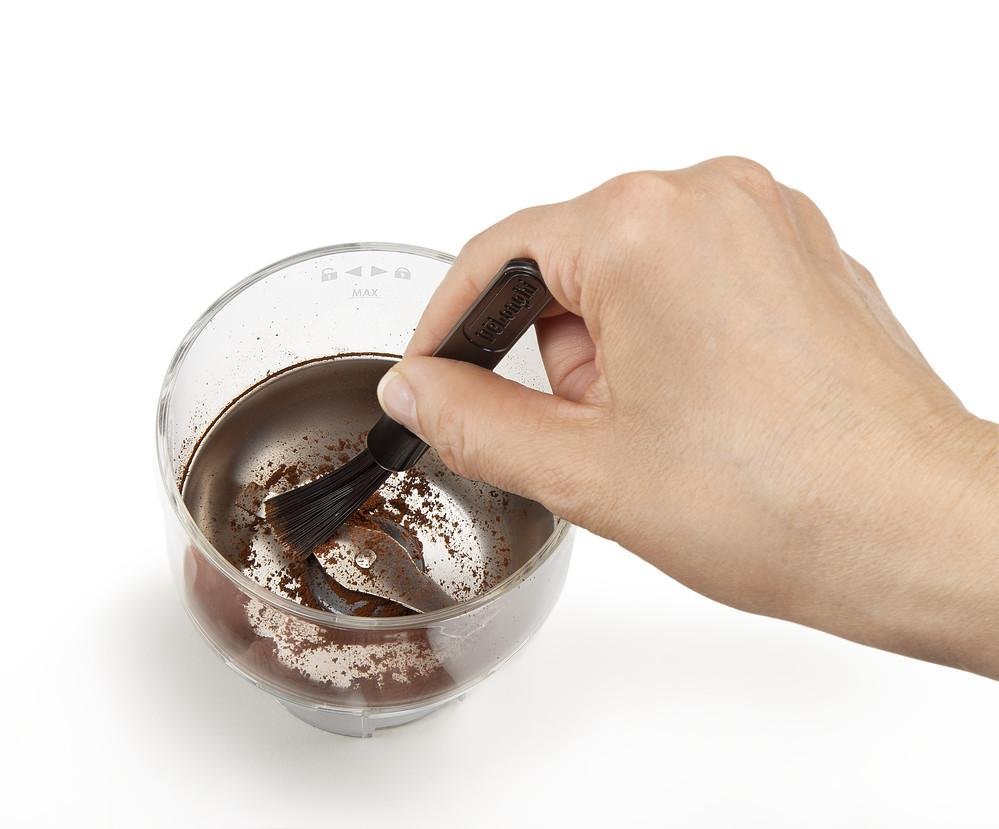 Czyszczenie zbiornika na kawę jest wygodne dzięki dołączonej do młynka szczoteczce.