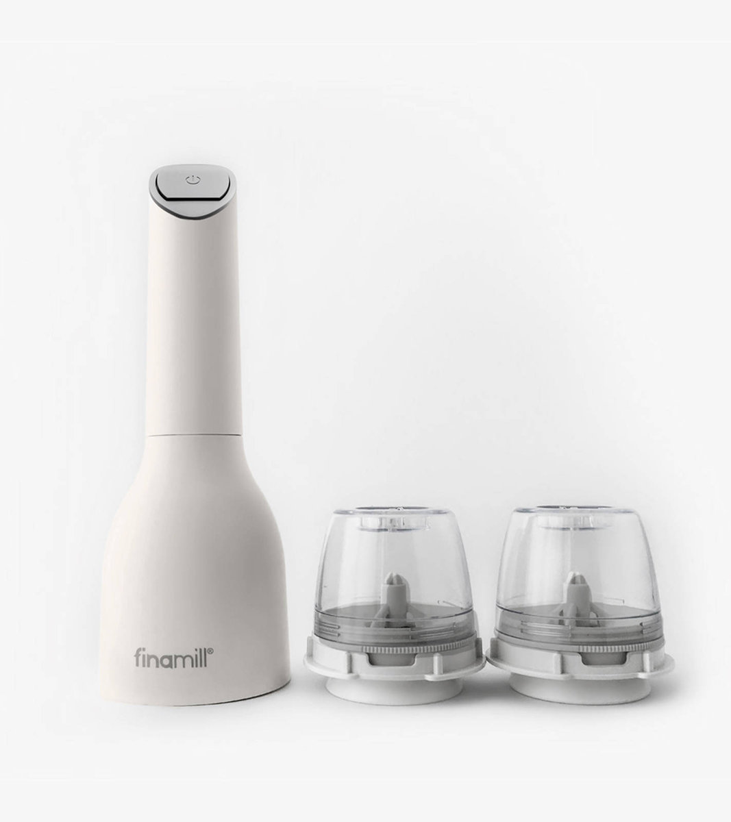 Młynek Elektryczny Do Pieprzu, Soli I Przypraw Finamill+Dwa Pojemniki W skład zestawu FinaMill wchodzi: 〰〰〰〰〰〰〰〰〰 ⭐ Młynek FinaMill w kolorze białym Dwa pojemniki na przyprawy FinaPod ...