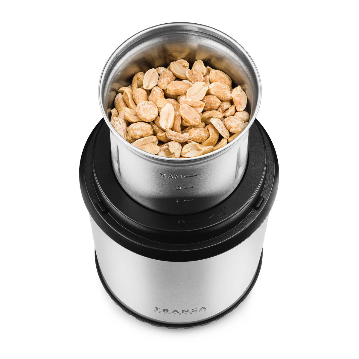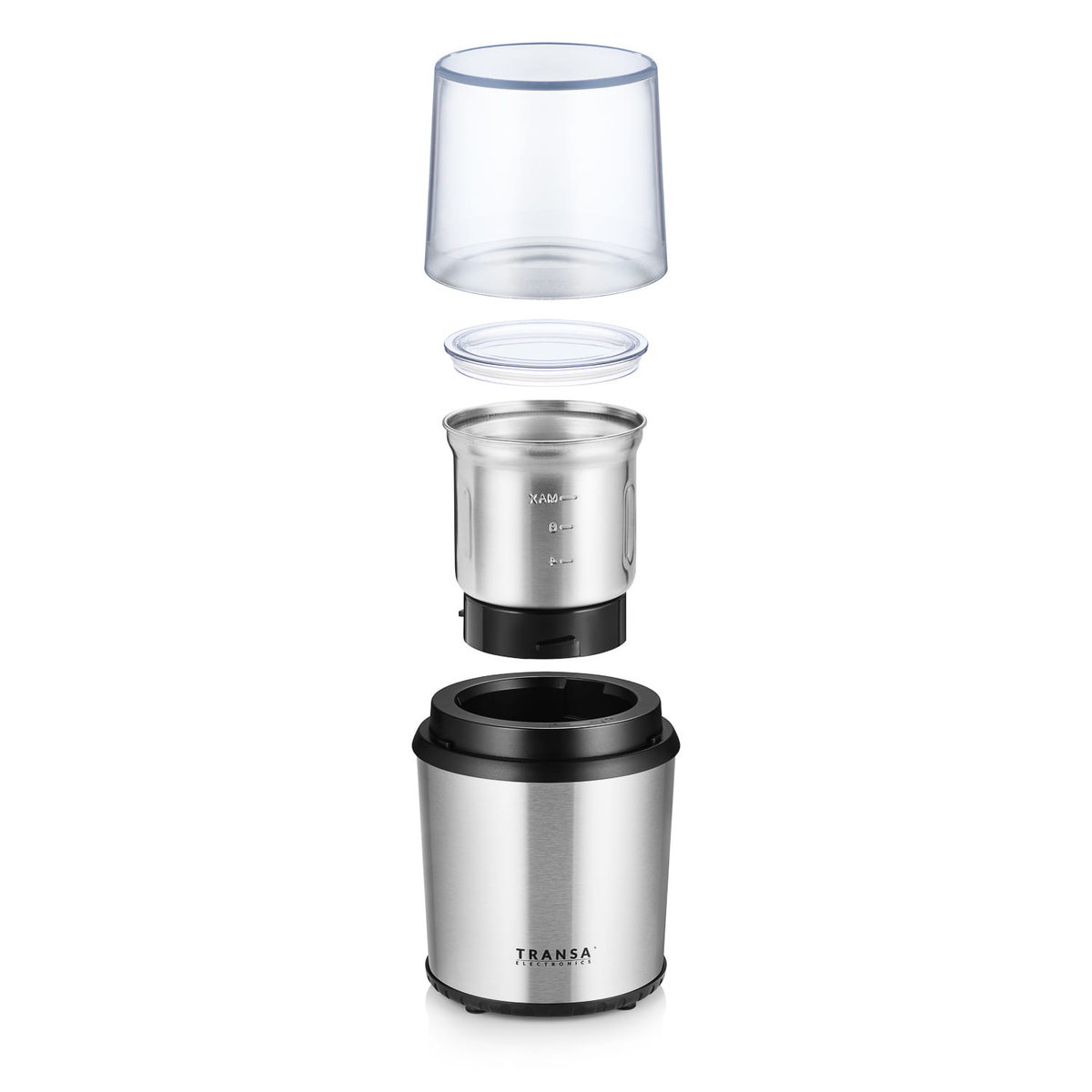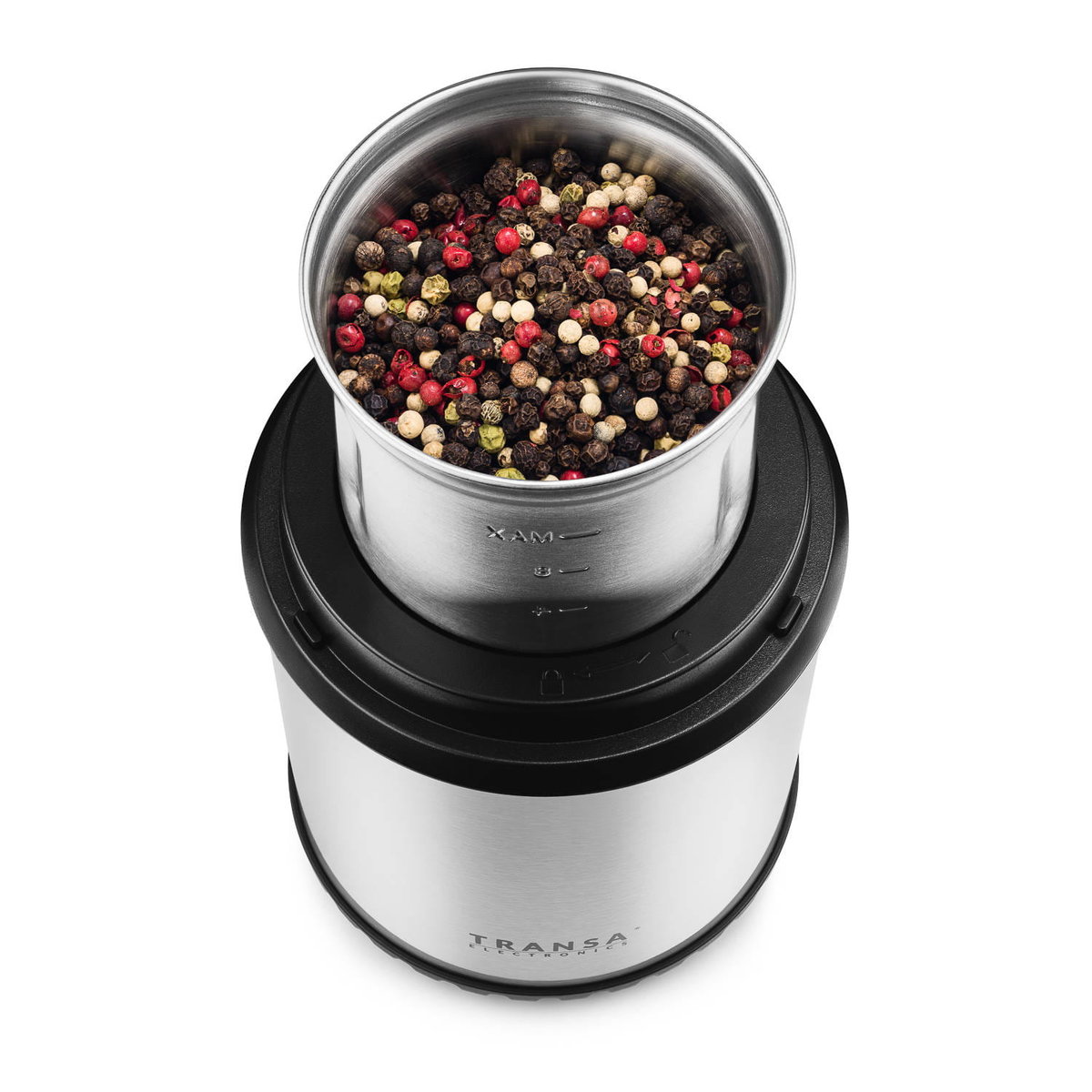 Młynek i rozdrabniacz 2w1 Mix&Grind Transa Electronics® Twoje wszechstronne narzędzie do mielenia zarówno kawy, jak i różnorodnych przypraw czy ziaren. Wyposażony w dwa oddzielne pojemniki z ostrzami do precyzyjnego mielenia oraz rozdrabniania, jest idealnym sprzętem do przygotowywania ulubionych mieszanek i aromatycznych kulinarnych eksperymentów.