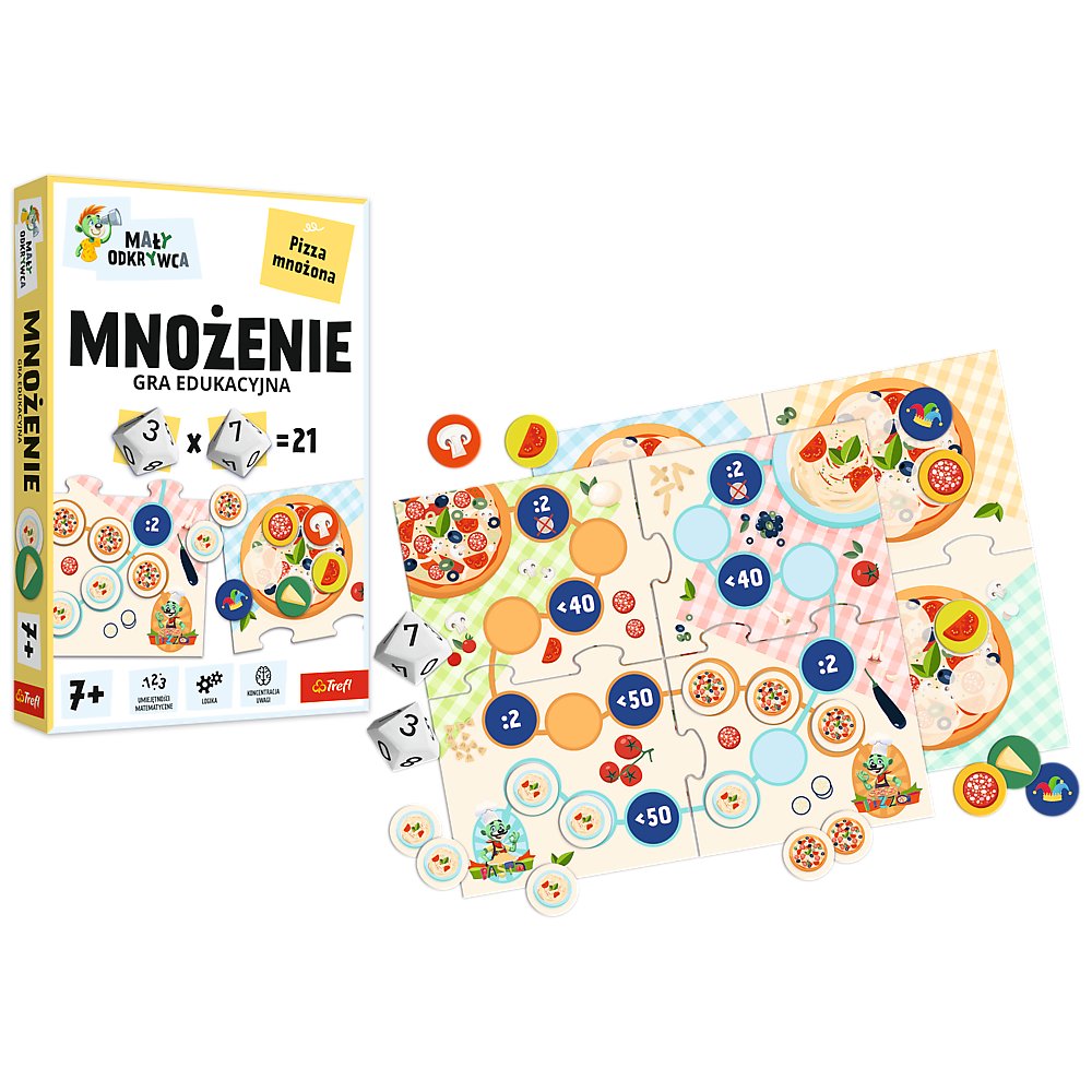 . Gra Pizza: Każdy z graczy pobiera planszetkę z obrazkiem pizzy dla siebie. Uczestnicy rozgrywki rozkładają wszystkie żetony. Każdy z graczy rzuca kostkami, a następnie podaje wynik mnożenia wyników z obu kostek. Jeśli wynik jest prawidłowy, gracz może pobrać żeton ze składnikiem i umieścić go na swojej planszetce. Wygrywa gracz, który jako pierwszy zgromadzi wszystkie składniki na swojej pizzy.