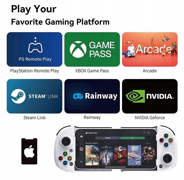 Kompatybilność z Android i iOS – ShanWan Q11A współpracuje z urządzeniami mobilnymi działającymi na systemach Android (6.0+) oraz iOS. Idealny do grania w gry cloudowe i aplikacje mobilne, a także gry Xbox Game Pass, Steam Link, GeForce NOW, MFi oraz inne popularne tytuły.