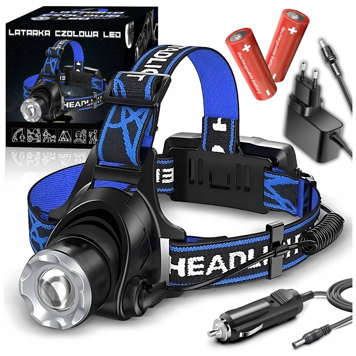 | Nazwa: | Mocna Latarka Czołowa Led Czołówka Q5 Zoom Na Głowę Zestaw Akumulatorowa |