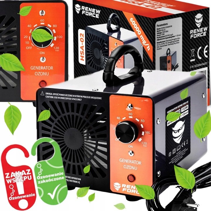 NOWOCZESNY I MOCNY OZONATOR 60 000 mg/h | 155W Do domu, biura, auta – skuteczna dezynfekcja i odświeżanie powietrza! ✅ MOC ✅ WYDAJNOŚĆ ✅ BEZPIECZEŃSTWO Nowoczesny, profesjonalny generator ...