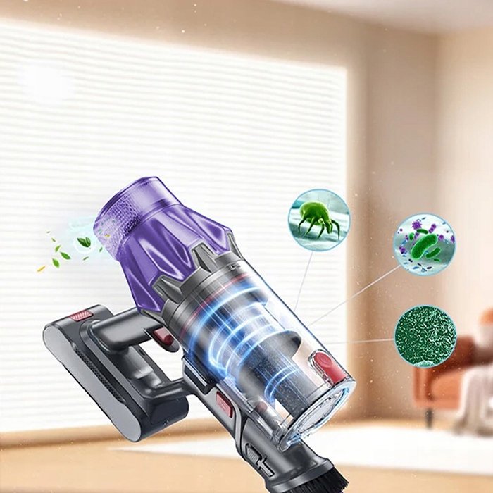 Odkurzacz Laresar wykorzystuje zaawansowany system filtracji z 7 warstwami, w tym filtr HEPA, który skutecznie blokuje kurz i brud w dużym zbiorniku, uwalniając czyste powietrze.