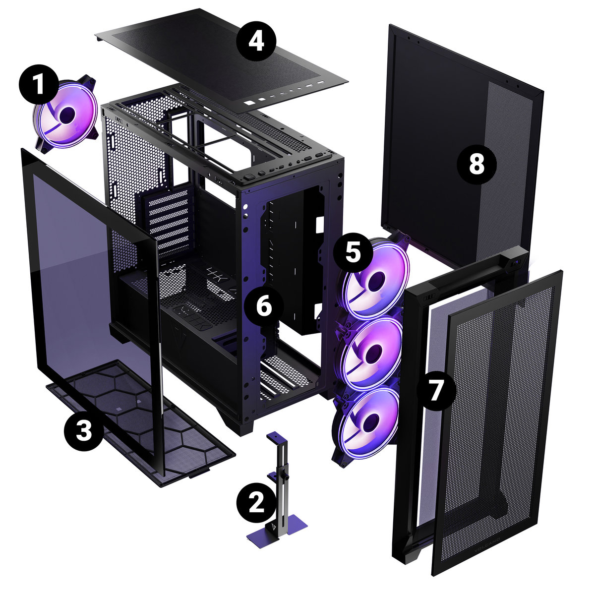 ✅ 3 x 140 mm wentylatory ARGB na froncie oraz 1 x 140 mm ARGB na tyle obudowy. Kontroler obrotów wentylatorów w obudowie.