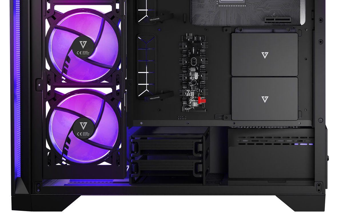Obudowa wyposażona jest w kontroler wentylatorów ARGB. Dzięki temu można zarządzać ich prędkością i podświetleniem. Łącznie można podłączyć 9 wentylatorów.
