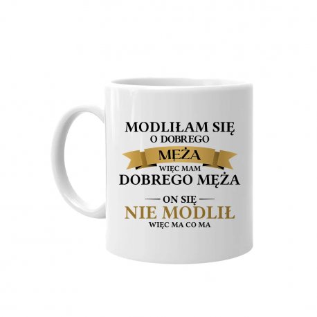| Nazwa: | Kubek ceramiczny Modliłam się o dobrego męża więc mam dobrego męża. On się nie modlił więc ma co ma - Kubek ceramiczny z nadrukiem na prezent |