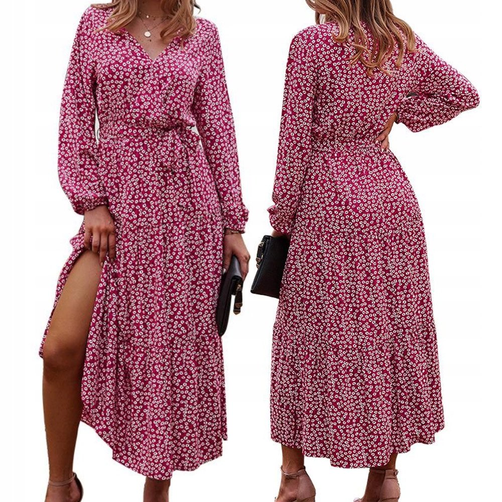Właśnie zrecenzowałem Modna Kobieca Sukienka Damska W Kwiaty Długa Maxi Kopertowa Wiązana Dekolt Rozmiar Uniwersalny