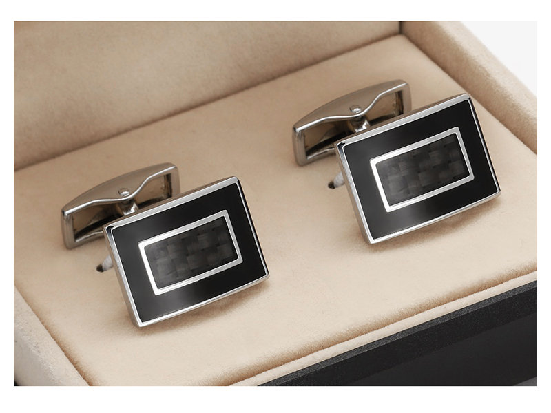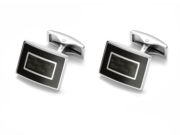 Doskonałej jakości stalowe spinki do mankietów zapakowane w eleganckie pudełko.