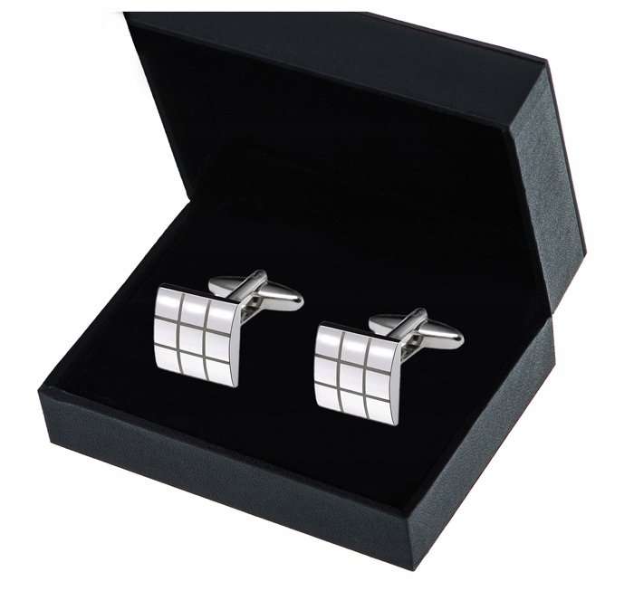 Stalowe spinki zapakowane w pudełko prezentowe.