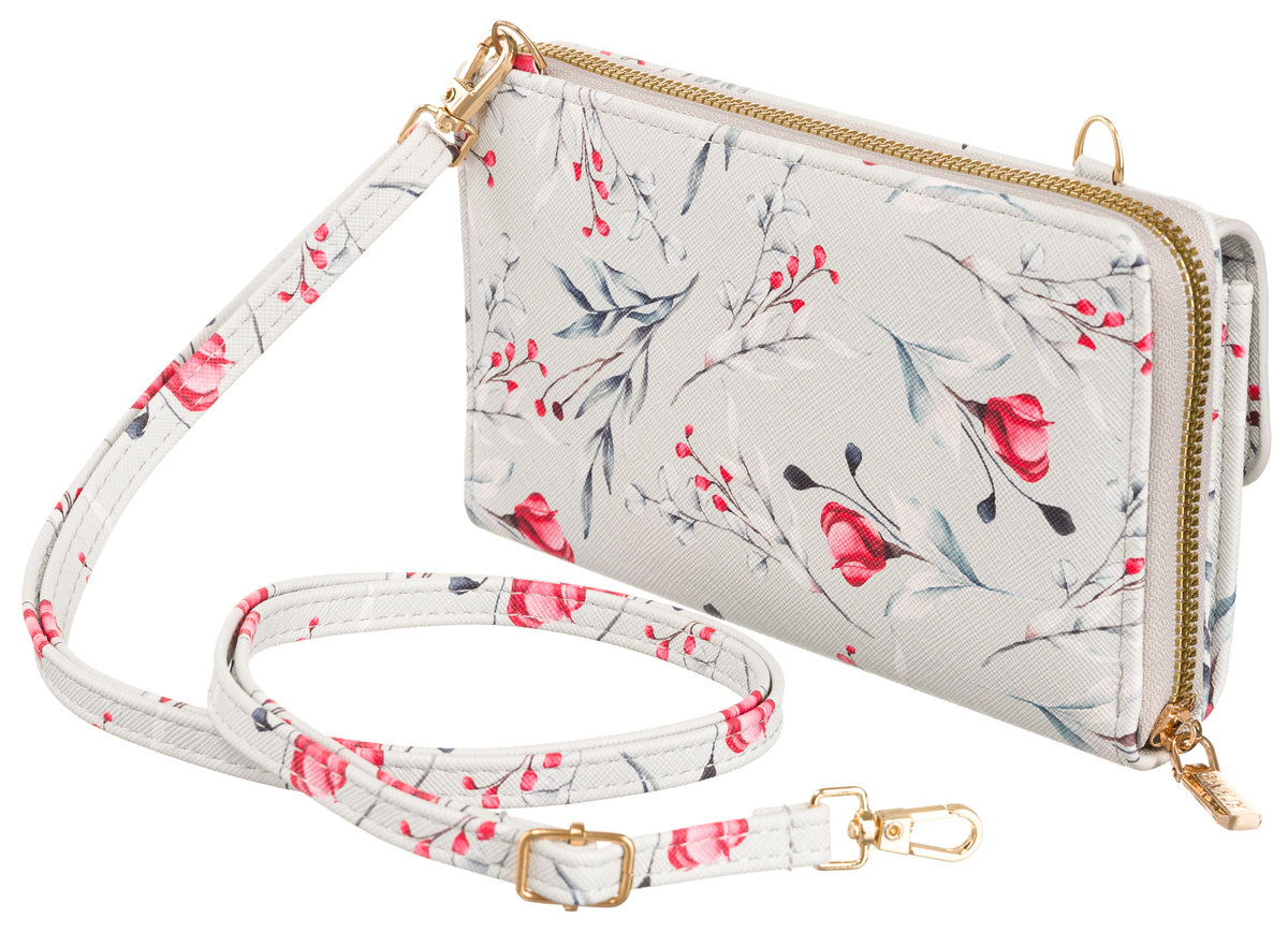 | Nazwa: | Modny torebko-portfel torebka damska crossbody portfel i kieszonka na telefon skóra ekologiczna w kwiaty Cavaldi, różnokolorowy szary |