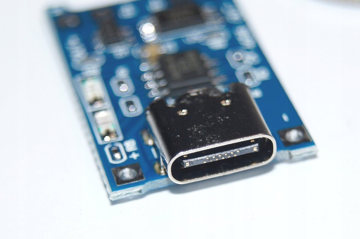 Moduł przeznaczony do ładowania ogniw Li-Ion (np. 18650). Maksymalny prąd ładowania 1A. Złącze USB C