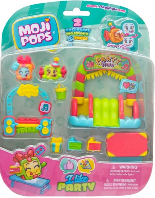 Na imprezach MojiPops dużo się dzieje! Nic dziwnego, skoro mają do dyspozycji m.in. zjeżdżalnię, prezent, tort i konsolę DJ'a. A MojiPops dobrze się bawią, wymieniają buziami i pokazując swoje minki i emocje.