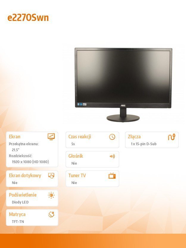 Właśnie zrecenzowałem Monitor AOC e2270Swn, 21.5", TN, 5 ms, 16:9, 1920x1080
