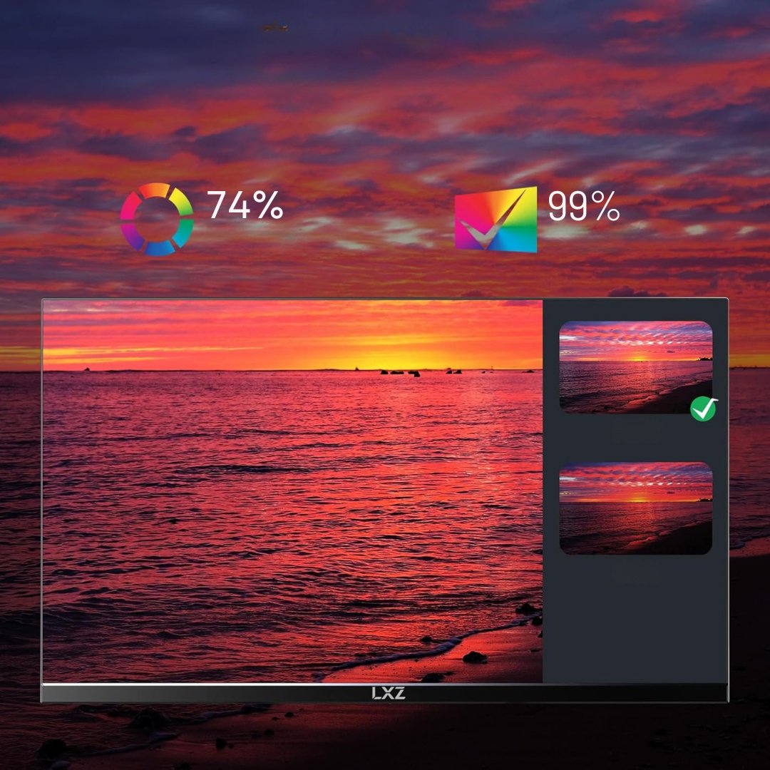 - Monitor z technologią IPS – precyzja i bogactwo kolorów: panel IPS z 74% pokryciem przestrzeni barw NTSC zapewnia wierne odwzorowanie kolorów i szerokie kąty widzenia. Dzięki temu obrazy stają się bardziej realistyczne i nasycone, co sprawdza się w pracy nad grafiką, fotografią czy montażem wideo.