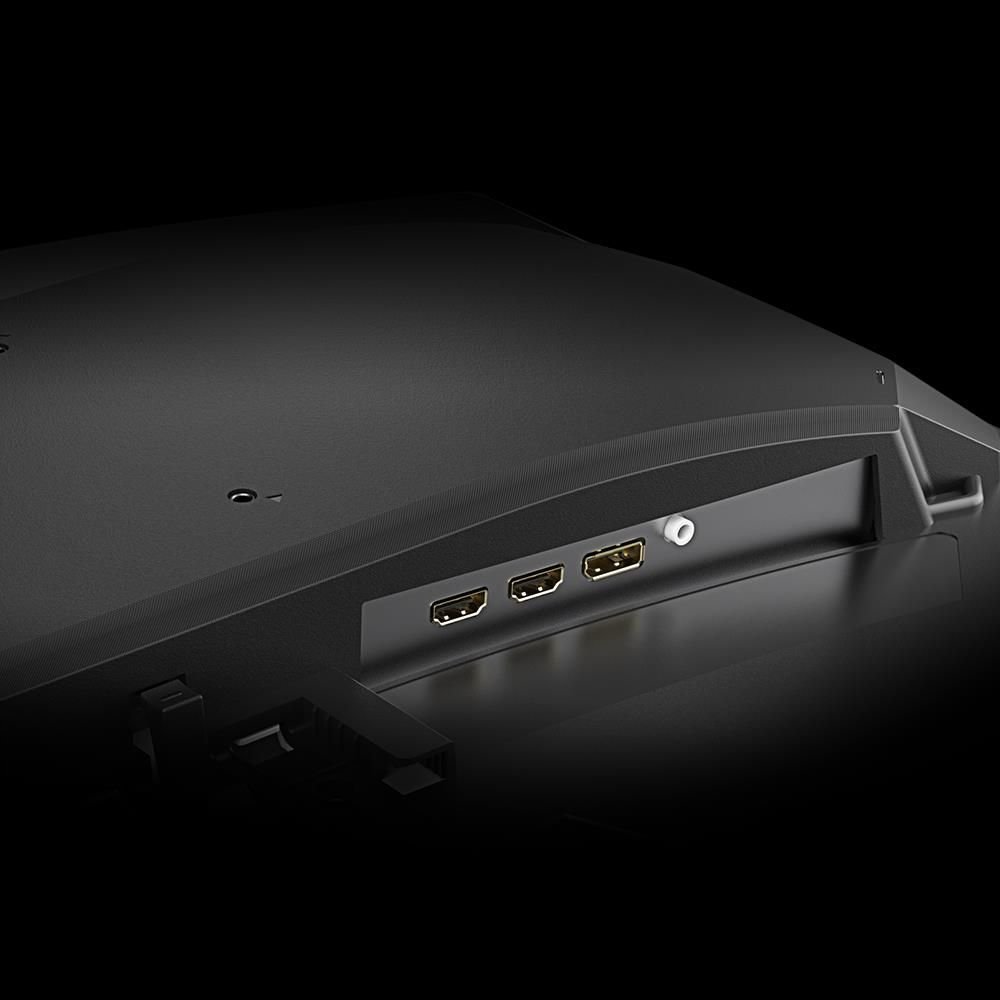 - Złącza: 2x HDMI 2.0, 1x DisplayPort 1.4, wyjście słuchawkowe