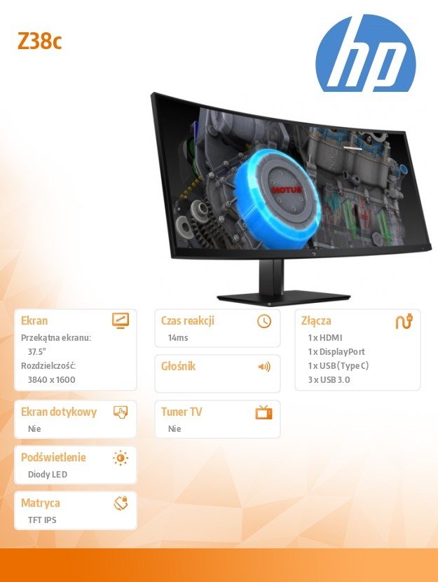 | Nazwa: | Monitor HP Z38c 3Curved Display Z4W65A4, 37.5", IPS, 21:9, 3840x1600 |