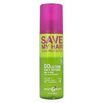 montibello smart touch save my hair sun protector dd lotion to ochronna dwufazowa odżywka przed słońcem, wiatrem i chlorem. ten wyjątkowy hiszpański kosmetyk jest niezastąpiony w okresie wakacyjnym. co ważne, możesz stosować go nie tylko na włosy, lecz także na ciało! tak, możesz nawilżyć i zabezpieczyć skórę oraz włosy przy pomocy zaledwie kilku naciśnięć atomizera. potrząśnij opakowaniem, by połączyć ze sobą dwie substancje czynne (wodną i olejową), a następnie spryskaj pasma (wilgotne lub suche) oraz ciało, a zwłaszcza ręce, dekolt i nogi. w efekcie otrzymasz ochłodzenie, nawilżenie i regenerację dla włosów i ciała. co daje odżywka montibello smart touch save my hair sun protector dd lotion: - ochronę przeciwsłoneczną spf4 - ochronę przed wiatrem, słoną morską wodą i chlorowaną wodą w basenie - zabezpieczenie włosów przed mechanicznymi uszkodzeniami - nawilżenie i odżywienie włosów i ciała - apetyczny melonowy zapach z domieszką letnich owoców odżywka do włosów montibello smart touch save my hair sun protector dd lotion aplikowana na wilgotne pasma po myciu zapobiega ich puszeniu, wygładza je, nabłyszcza i znacząco ułatwia stylizację. jednak przede wszystkim aktywnie dba o kondycję włosów! w składzie znajdują się: wyciąg z melona, środki przeciwutleniające i filtry uva/uvb. produkt nie wymaga spłukiwania. pojemność: 200ml