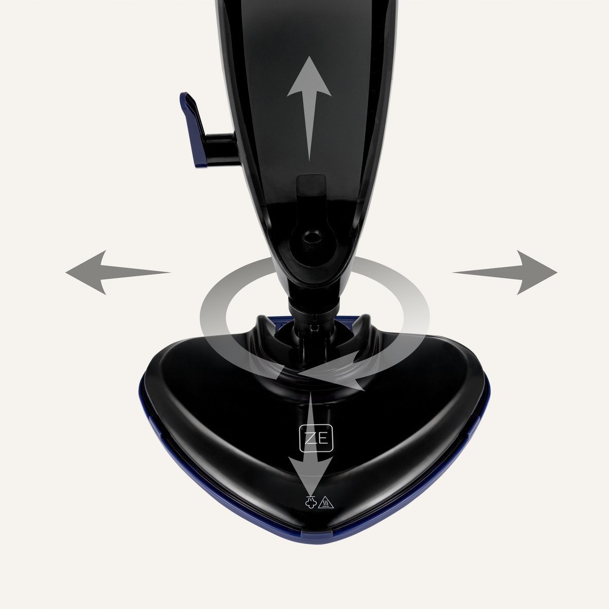 Ruchoma głowica zapewnia wyjątkową swobodę manewrowania, dzięki czemu z łatwością dotrzesz do narożników, krawędzi i trudno dostępnych miejsc. Bez problemu posprzątasz pod stołem, wokół krzeseł czy pod szafkami łazienkowymi.