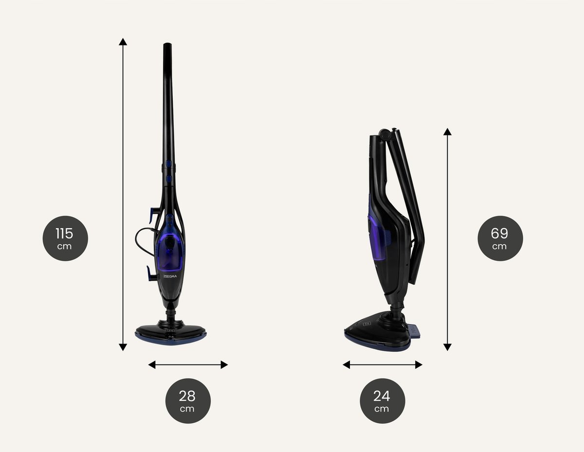 Funkcja szybkiego składania mopa parowego sprawia, że urządzenie bez problemu zmieści się w szafie, schowku lub większych szufladach.
