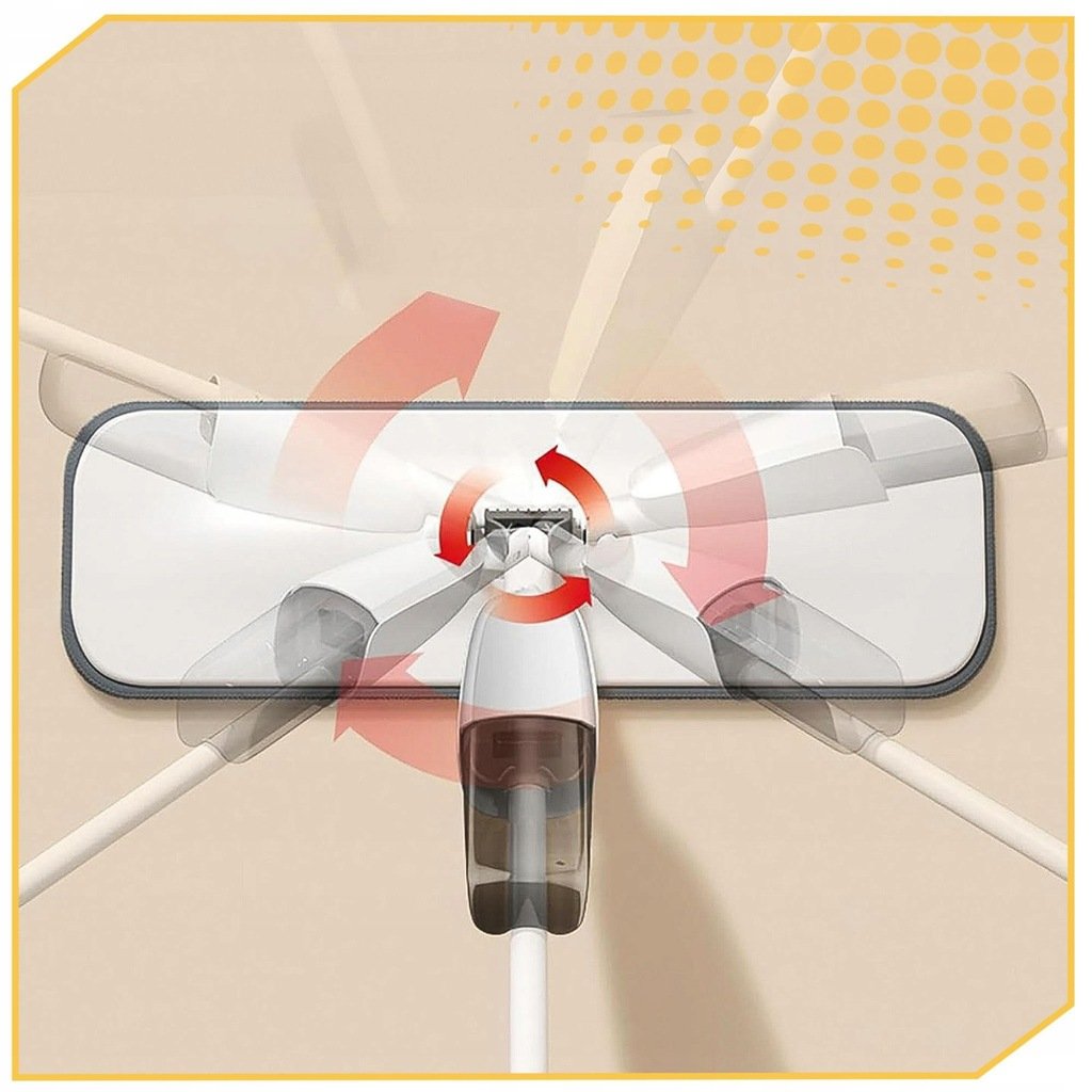 Głowica obracająca się w 360° przekłada się na łatwe i wygodne manewrowanie wokół mebli. Dzięki niej mop dociera do krawędzi i kątów, dokładnie czyszcząc całą powierzchnię.
