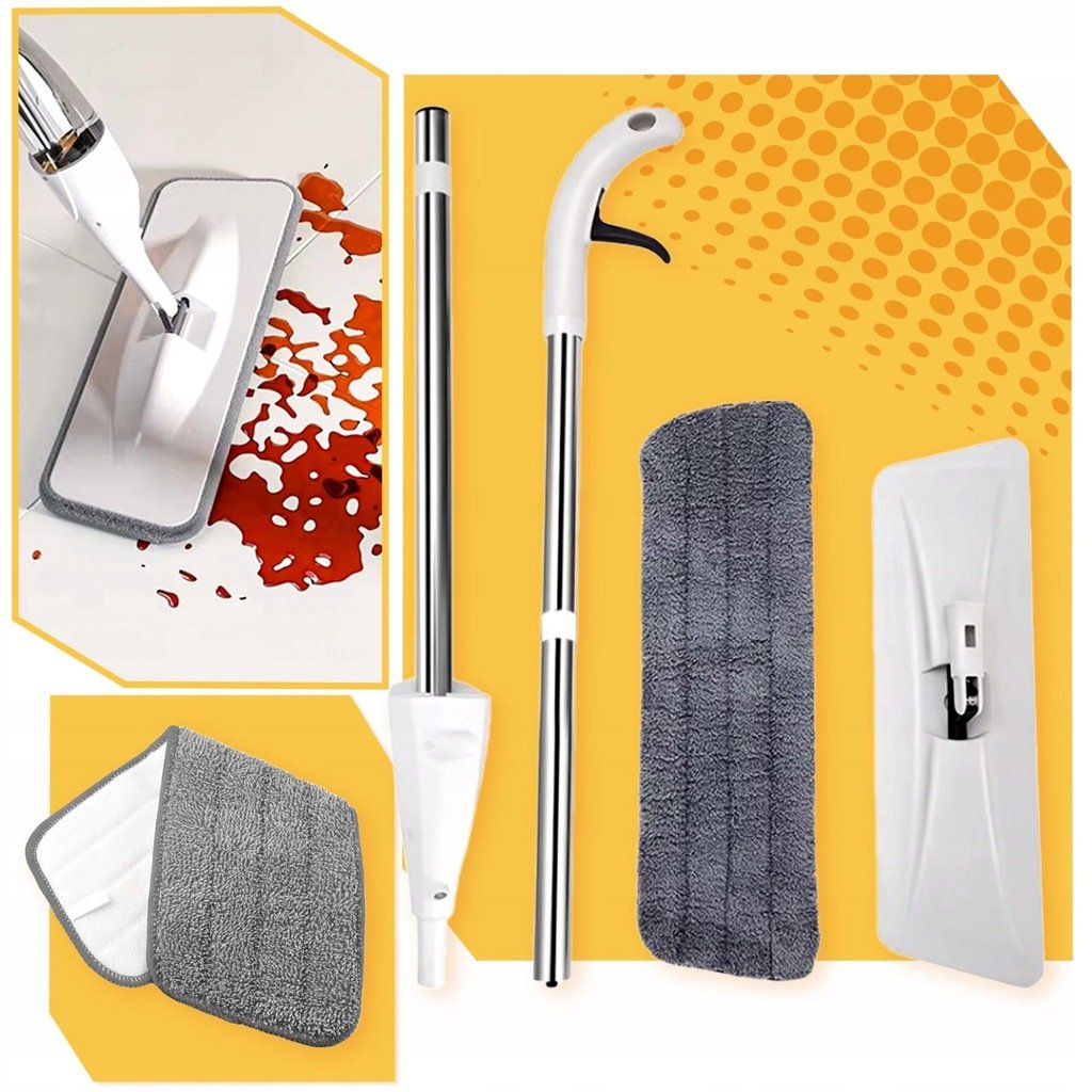 MOP PŁASKI ZE SPRYSKIWACZEM 350ml MIKROFIBRA 3 SZT DŁUGI 125cm + 3x WKŁADY Wygodne mycie podłogi? TO MOŻLIWE! Nasz mop płaski ze spryskiwaczem bez problemu dociera do trudno dostępnych ...