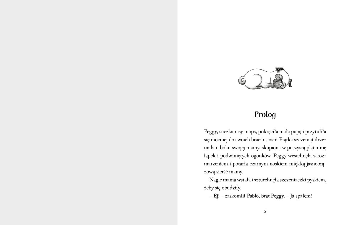Poznaj przygody wesołego mopsika Peggy! Książka zawiera trzy opowieści "Mopsik, który chciał zostać jednorożcem", "Mopsik, który chciał zostać reniferem", "Mopsik, który zostać elfem"