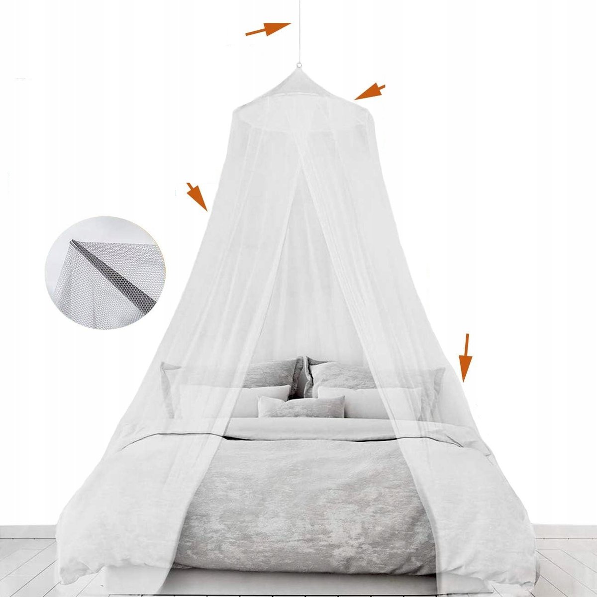 ✅ Wymiary: około 0,60 m (średnica pierścienia mocującego u góry) x 2,5 m (wysokość) x 12,5 m (obwód na dole). Pasuje do łóżek dwuosobowych o wymiarach 2 x 2 m.
