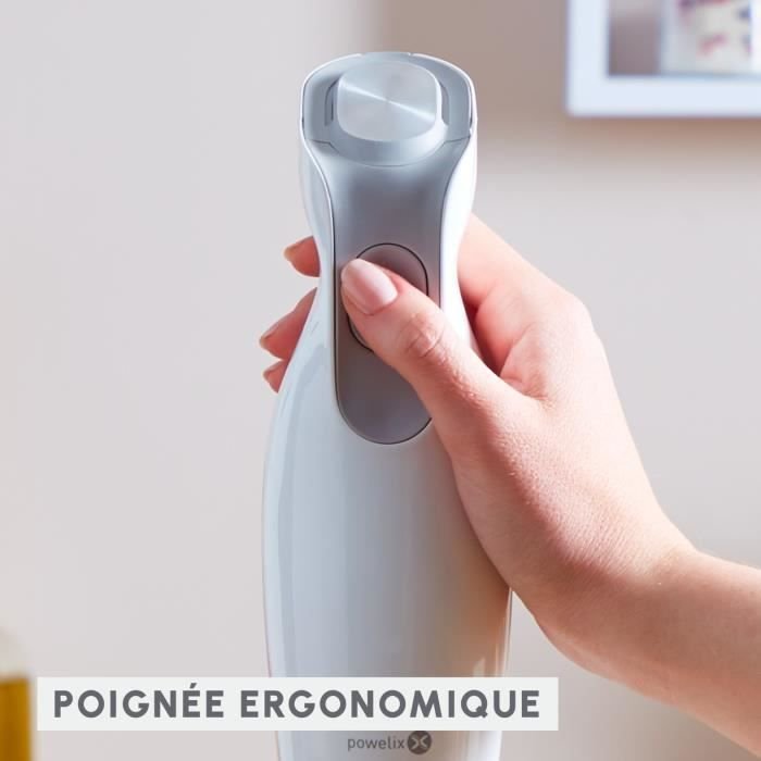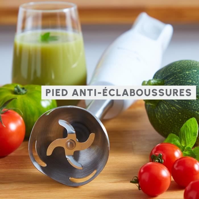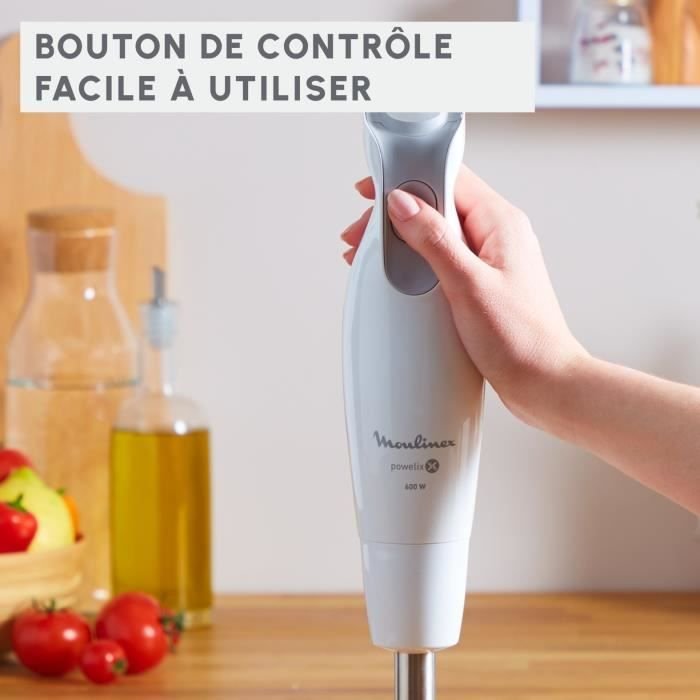 Blender ręczny Moulinex Dailychef oferuje optymalną wydajność i łatwość obsługi. Posiada 4 ostrza ze stali nierdzewnej z technologią Powelix, gwarantujące długotrwałą wydajność miksowania i 30% szybsze rezultaty (w porównaniu z naszą klasyczną technologią 2 ostrzy). Dzięki mocnemu silnikowi o mocy 600 W zapewnia optymalną wydajność. Blender ręczny jest wyposażony w ergonomiczny, teksturowany uchwyt z jednym, bardzo intuicyjnym przyciskiem podwójnej prędkości, aby spełnić wszystkie Twoje potrzeby w zakresie miksowania.