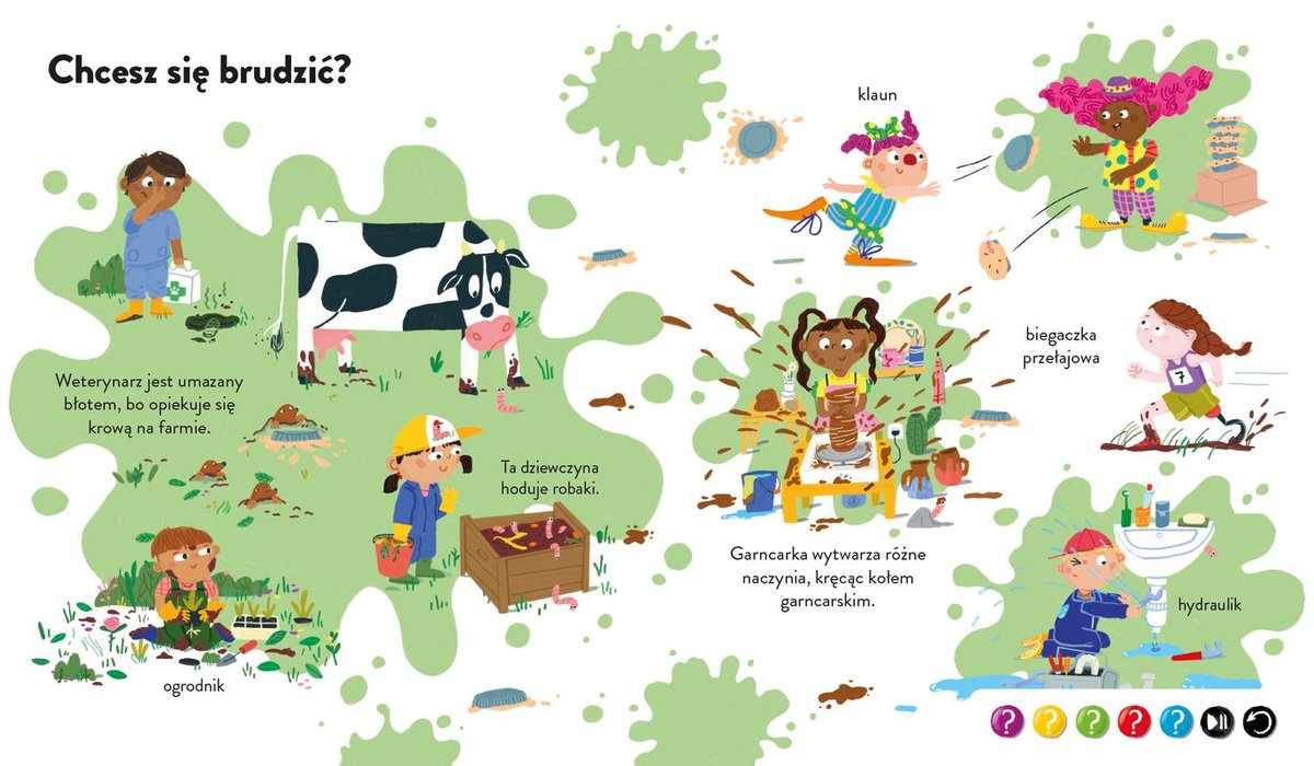 Publikacja zawiera mnóstwo różnorodnych, często zabawnych dźwięków, charakterystycznych dla poszczególnych zawodów. Na uwagę zasługuje świetna oprawa lektorska. Mali czytelnicy sprawdzą także swoją wiedzę i spostrzegawczość, odpowiadając na pytania.