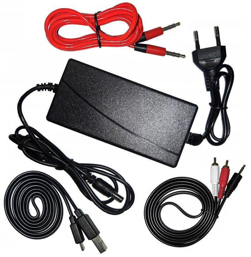 Akcesoria w zestawie: zasilacz, kabel USB, kabel minijack-RCA, kabel minijack-minijack.