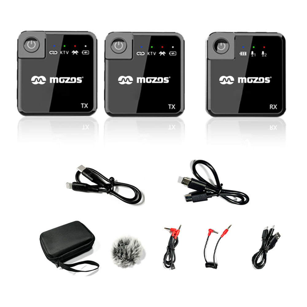 Dzięki sprawdzonemu pasmu 2.4 Ghz mamy pewność, że wszystko co jest dla nas ważne zostanie nagrane z dbałością o wszystkie szczegóły bez przerw w transmisji. Akumulatory o dużej pojemności posiadają zabezpieczenie przed nadmiernym rozładowaniem gwarantując długą (do 6 godzin) pracę i bezawaryjność. Dołączone niezbędne kable dają pełną kompatybilność z aparatem, telefonem, komputerem, kartą dźwiękową, mikserami itp. Co jest też bardzo istotne pasmo 2.4 Ghz zapewnia również zdecydowanie większy zasięg działania niż tradycyjne rozwiązania np. Bluetooth. Mozos MX1 zapewnia stabilną transmisję nawet do 40 metrów (na wolnej przestrzeni, bez zakłóceń). W zestawie znajdują się dwa mikrofony które znacznie poszerzają możliwości.