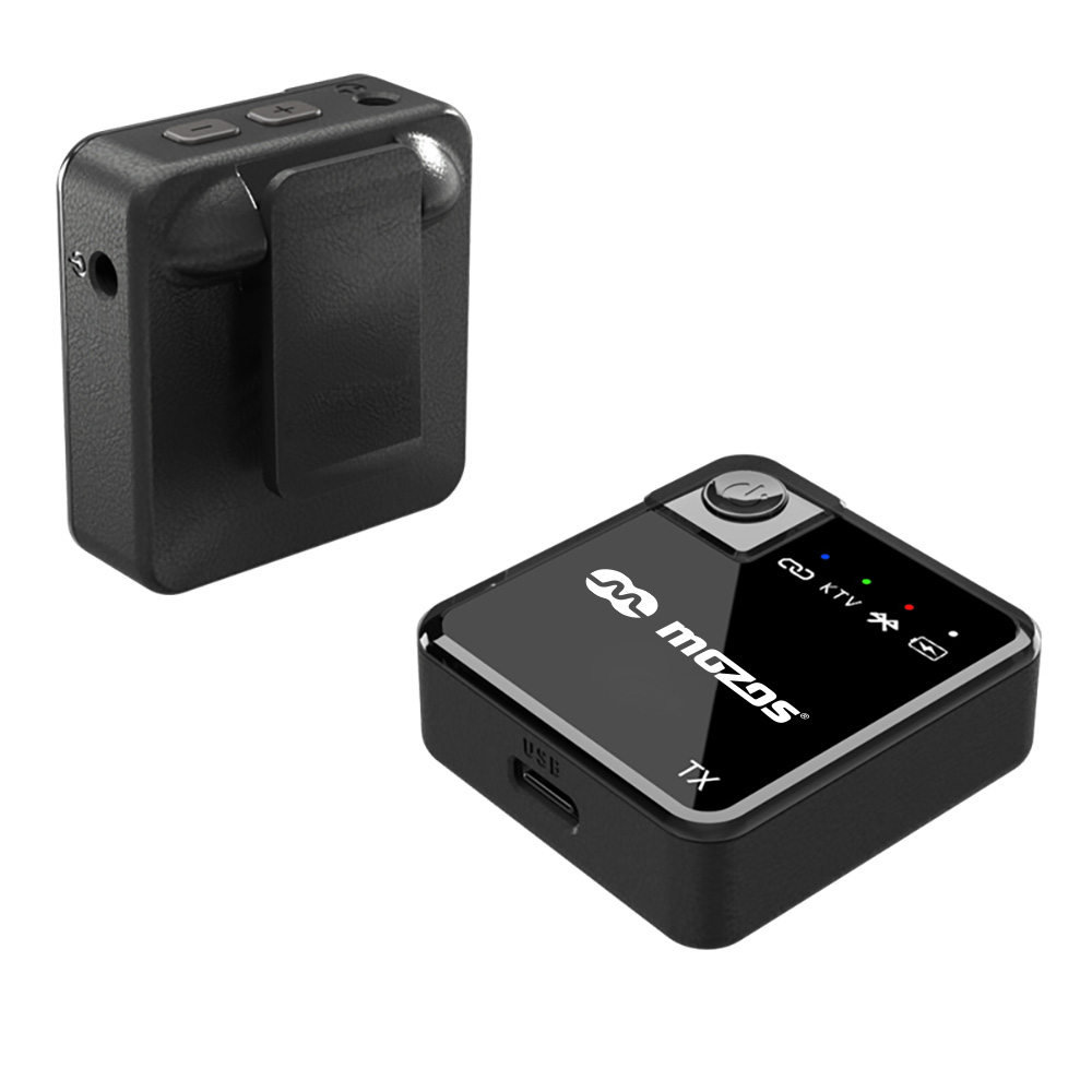 System Mozos MX1 paruje się automatycznie po włączeniu urządzeń. Nadajnik i odbiornik są niewielkich wymiarów a ich niska waga 26 gram zapewnia ultra mobilność. Możliwości montażu jest kilka w tym dzięki wbudowanemu klipsowi.