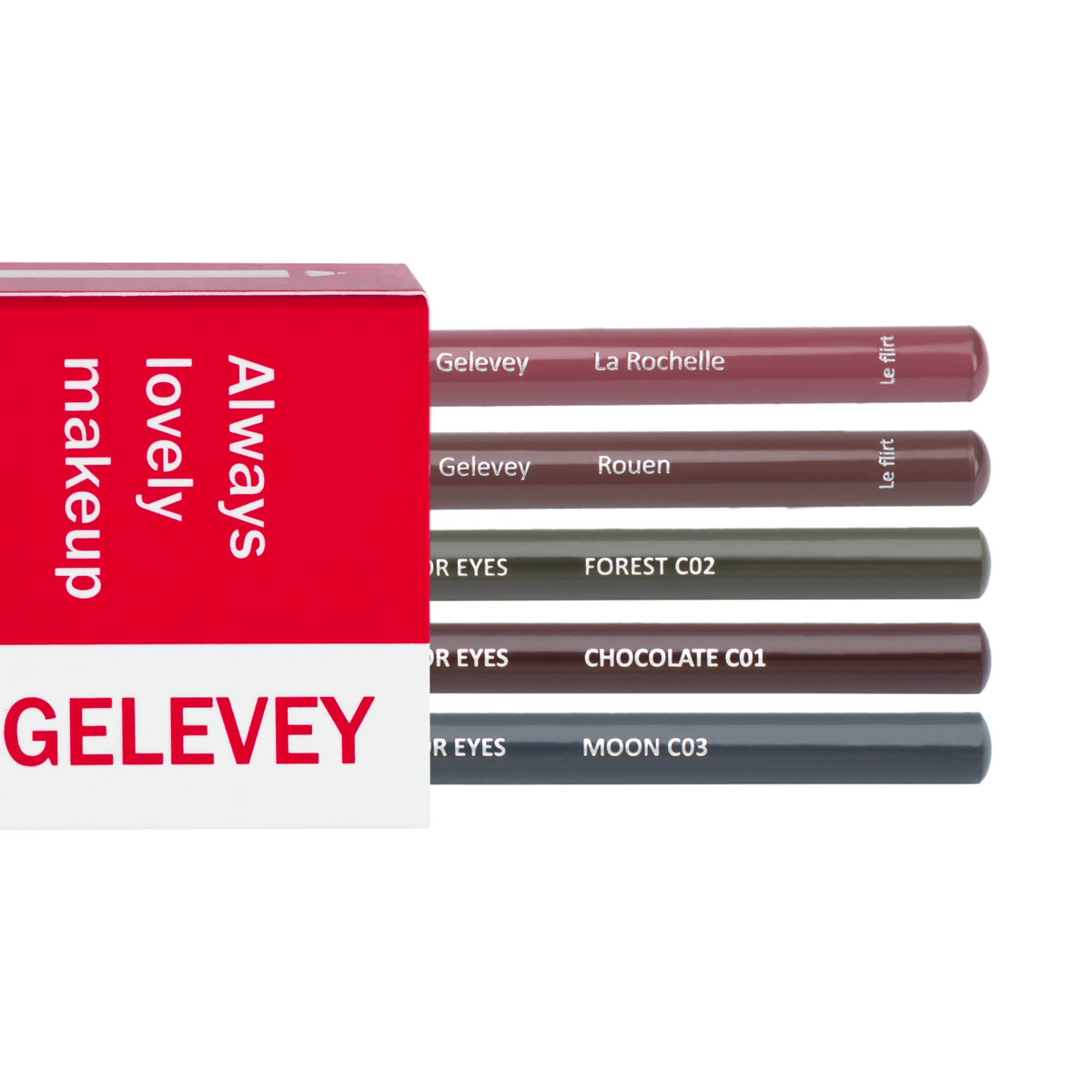 W skład zestawu wchodzą kredki do ust i oczu w uniwersalnych odcieniach, idealnych zarówno na dzień, jak i na wieczór.