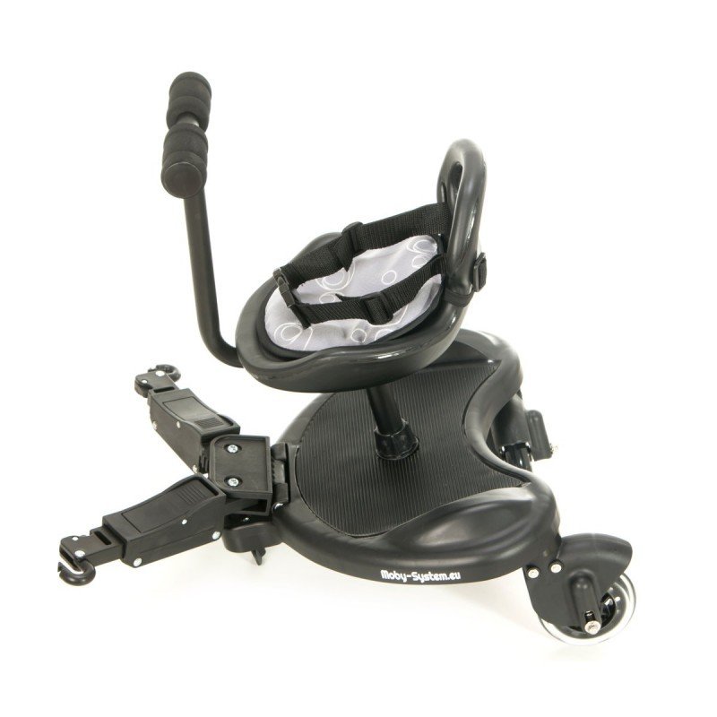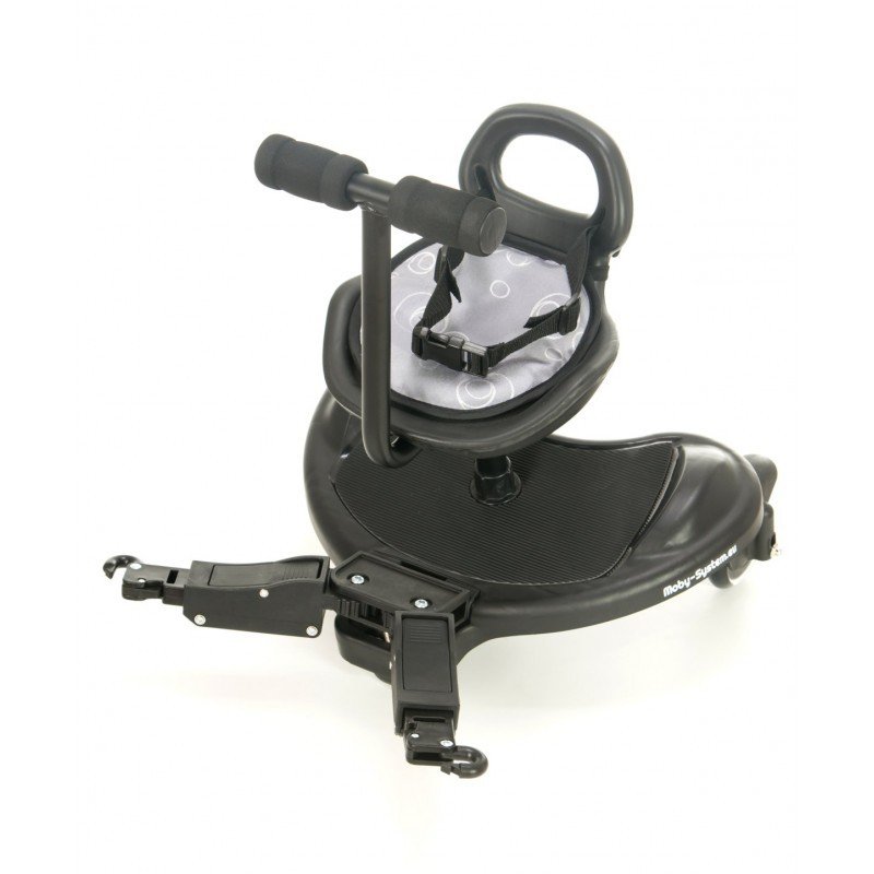 Mr Buggy to świetnie zaprojektowana dostawka. Dziecko może na niej stać lub wygodnie siedzieć. Co ważne, dostawka posiada uniwersalny system mocowania, który łączy się z pionowymi i poziomymi ramami wózków dziecięcych. W praktyce oznacza to, że pasuje do wszystkich standardowych wózków . Ta solidna i lekka konstrukcja, to doskonałe rozwiązanie dla rodziców posiadających dzieci w różnym wieku.