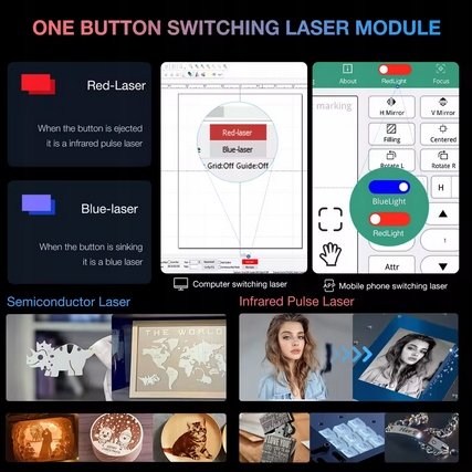 Czerwony laser może grawerować większość produktów metalowych, takich jak stal nierdzewna i stop aluminium, pozostawiając oznaczenia na powierzchni metalu.